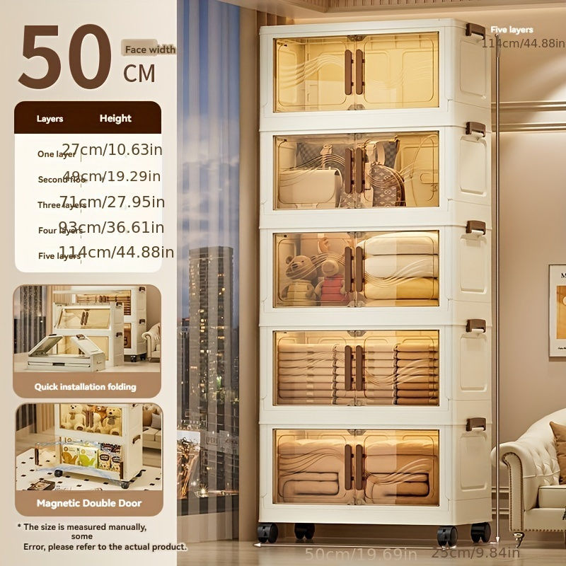 1 Piece Of 3/4/5 Layer Folding Storage Cabinet, Magnetic Double Door, Dust-proo
