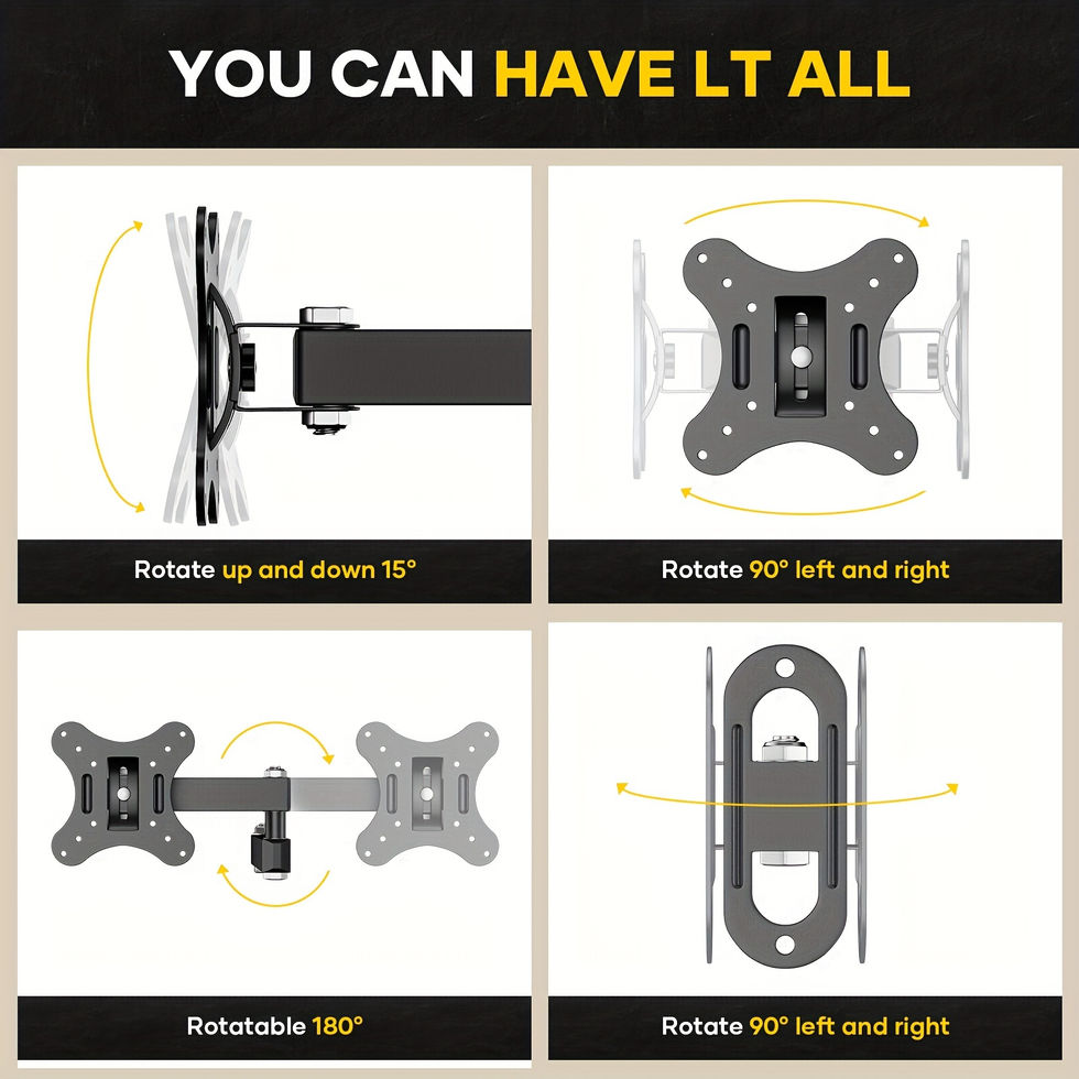 1pc Adjustable Tilt & Swivel TV Wall Mount Bracket, 15-Degree Tilt, 180-Degree