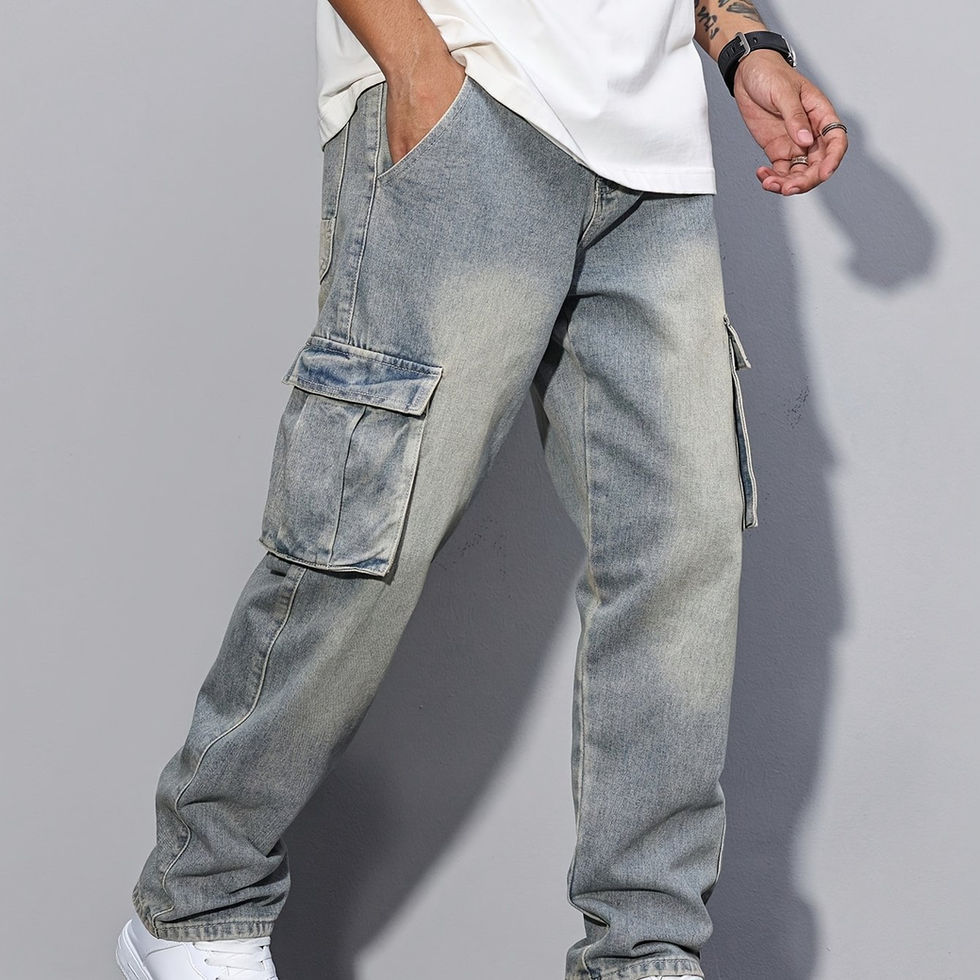 1pc American High Street Pocket Heavy-Duty Straight-Leg Faux Denim, Retro Vinta
