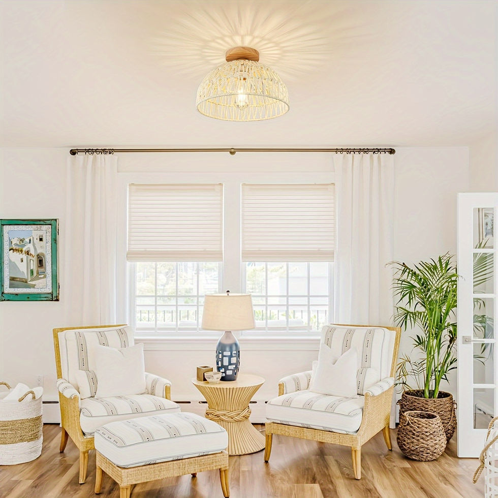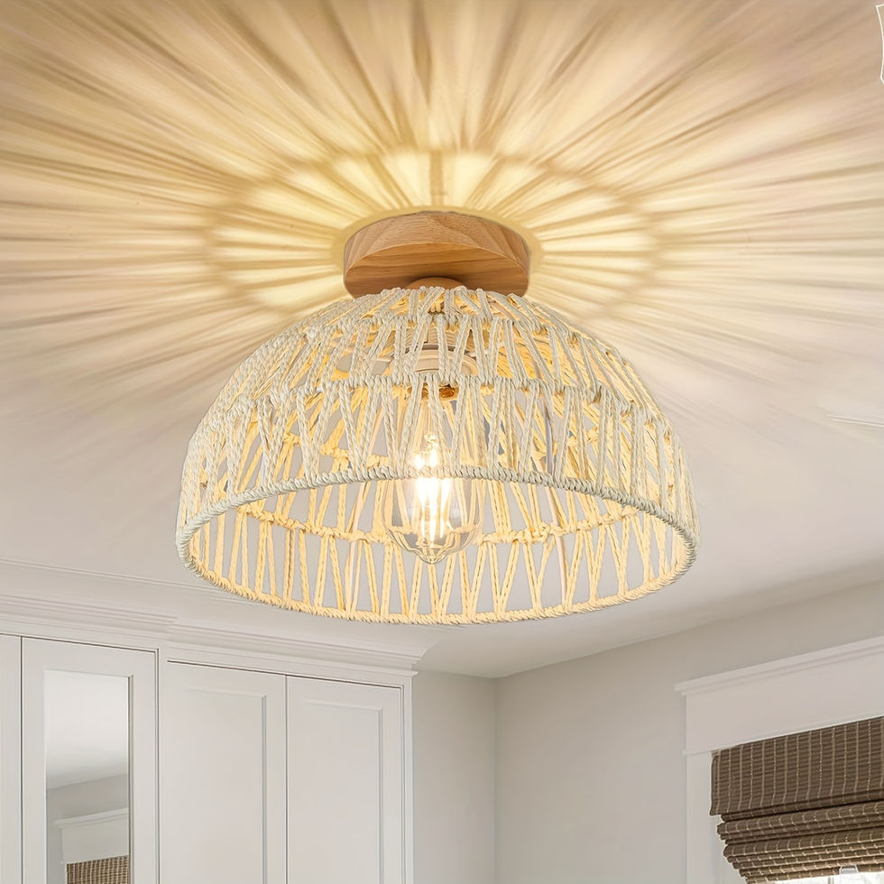 1pc Bohemian Rattan Ceiling Light Fixture, Mid-Century Style Handwoven Pendant