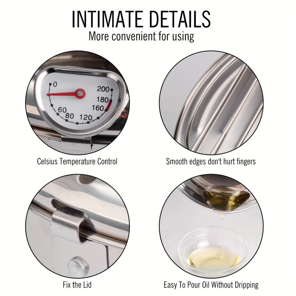 1pc Deep Fryer, Stainless Steel Frying Pan With Lid, Temperature Control & Oil