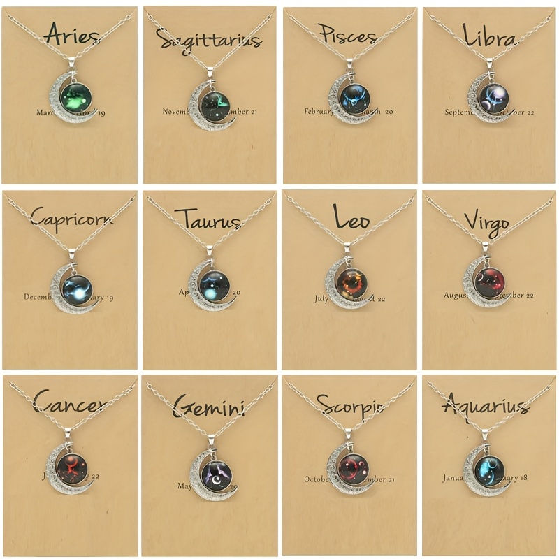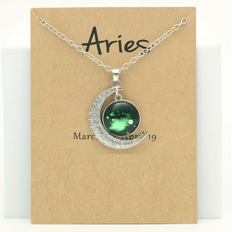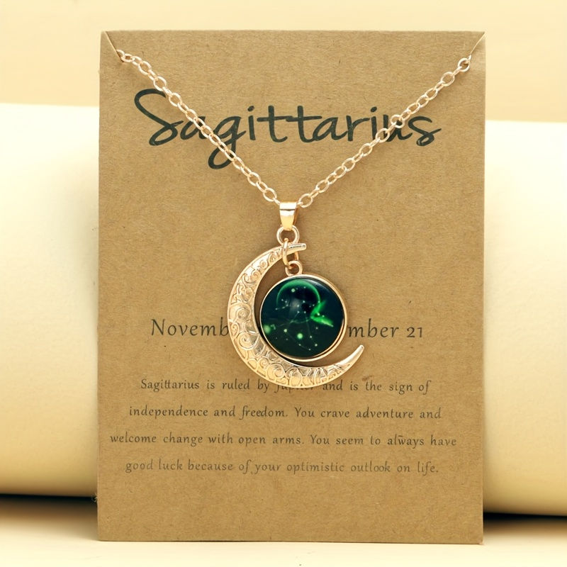 1pc Retro Glow-in-the-Dark Zodiac Moon Pendant Necklace - Vintage Style, Zinc A