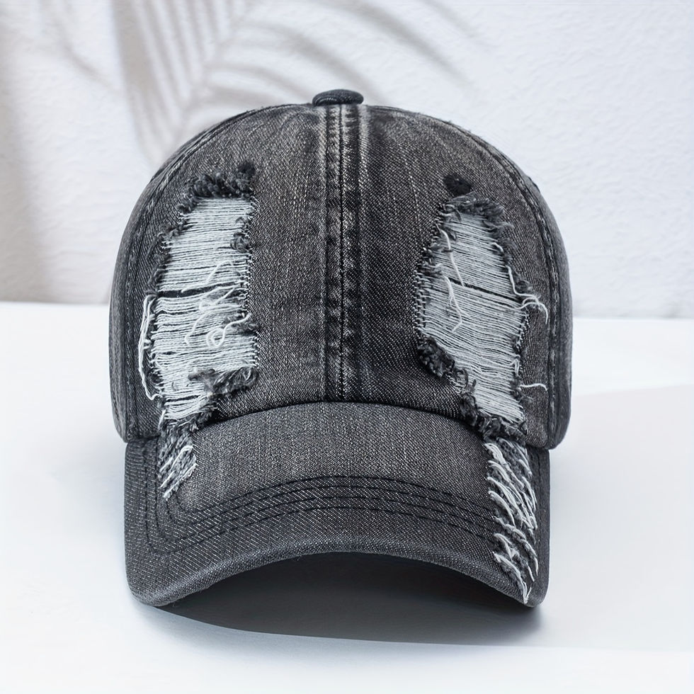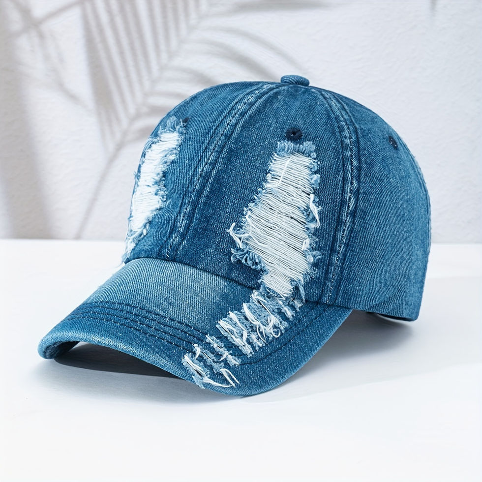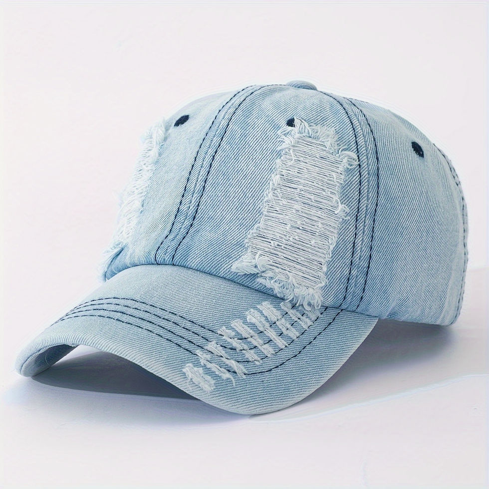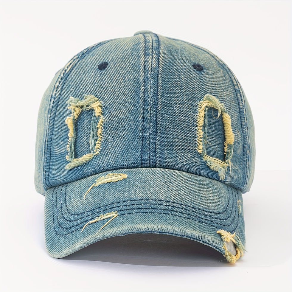 1pc Unisex Sunshade Washed Denim Baseball Cap With Trendy Pattern For Matching