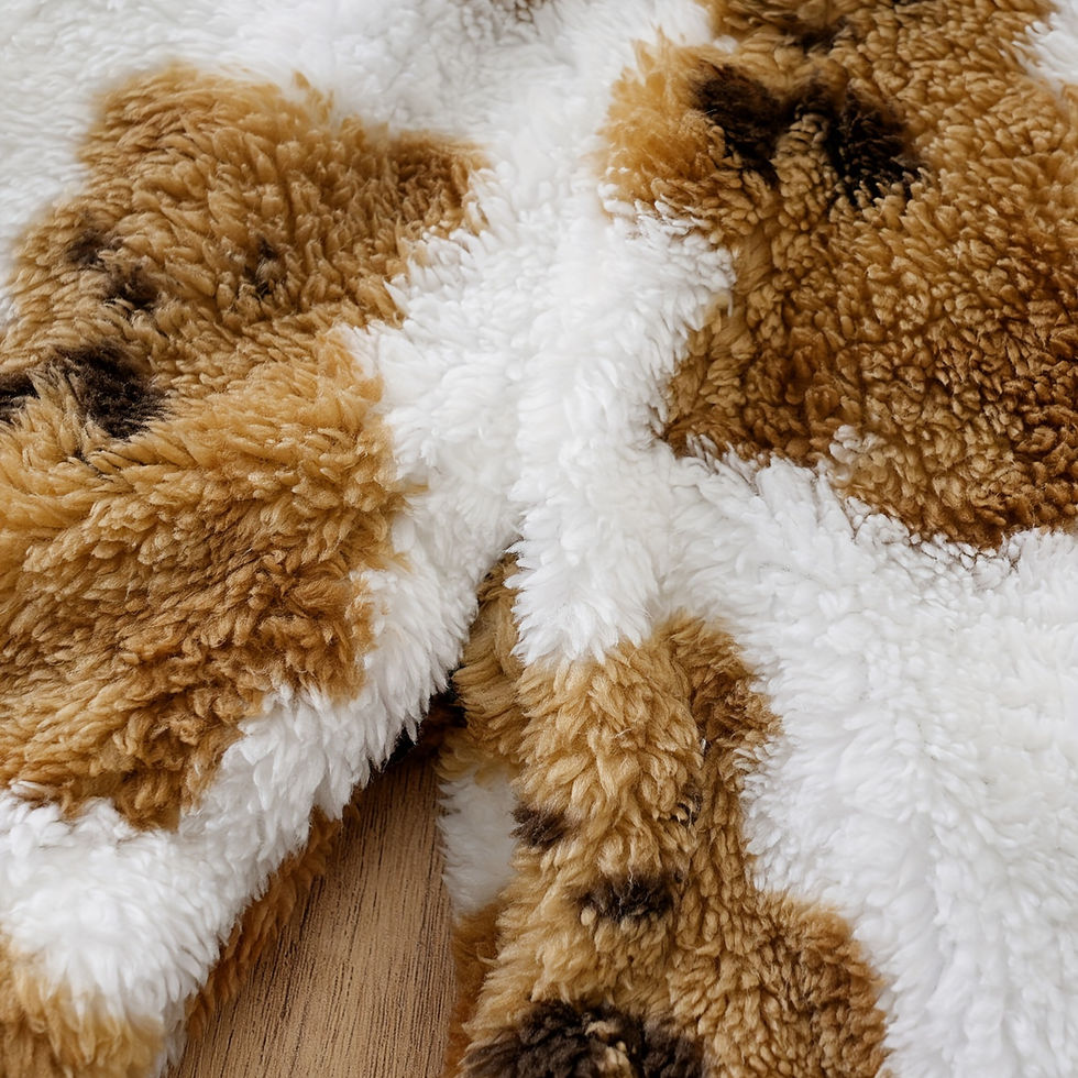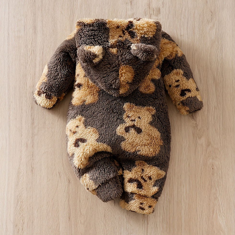 2-Pack Winter Baby Boy Romper, Cartoon Bear Print, Double-Sided Fleece, Warm Ho