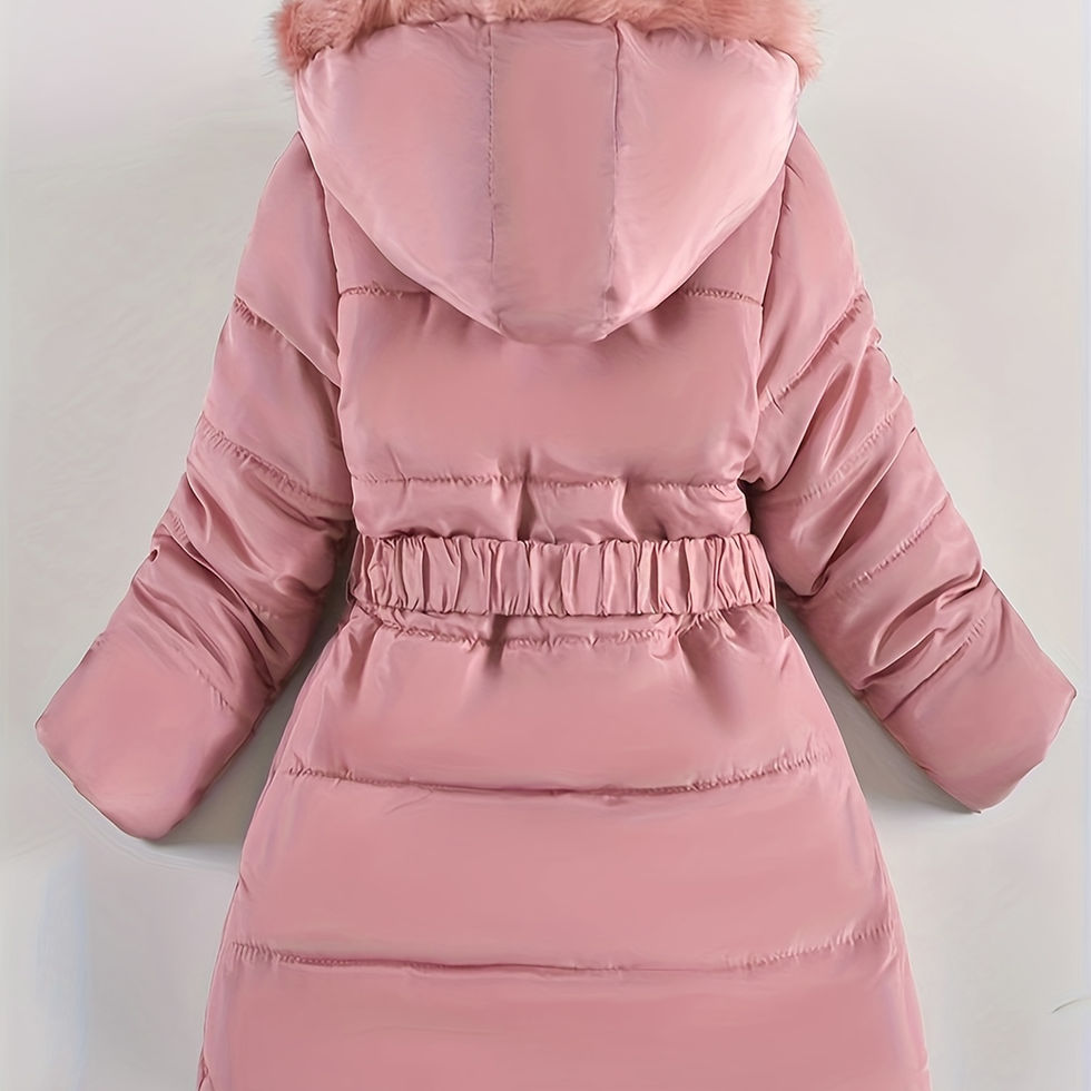 2023 Winter Girls' Hooded Jacket - Cozy Thickened Zip-Up Coat with Adjustable B