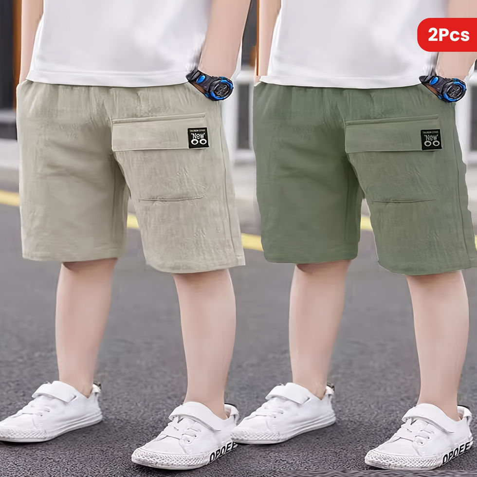 2pcs Boys' Summer Shorts - Lightweight Breathable Casual Pants with Pockets, Lo