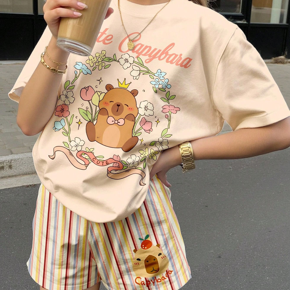 2pcs Vintage Bow Tie & Leopard Print Tween Girls Casual Minimalist Short Sleeve