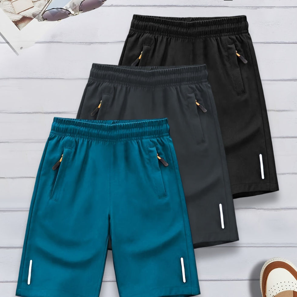 3pcs Boys' Youth Casual Athletic Shorts - Breathable, Comfortable, Solid Color