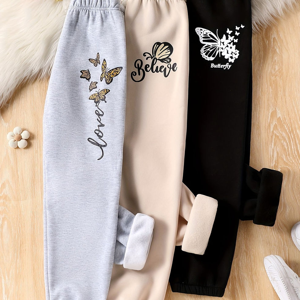 3pcs Girls' & Big ' Thermal Winter Pants with Cuff - Heavy-Duty Warm Casual Tro