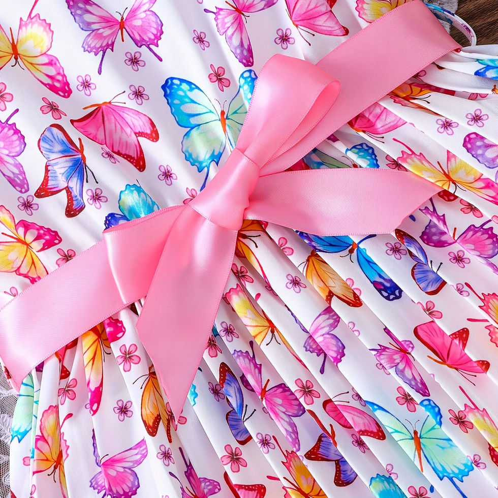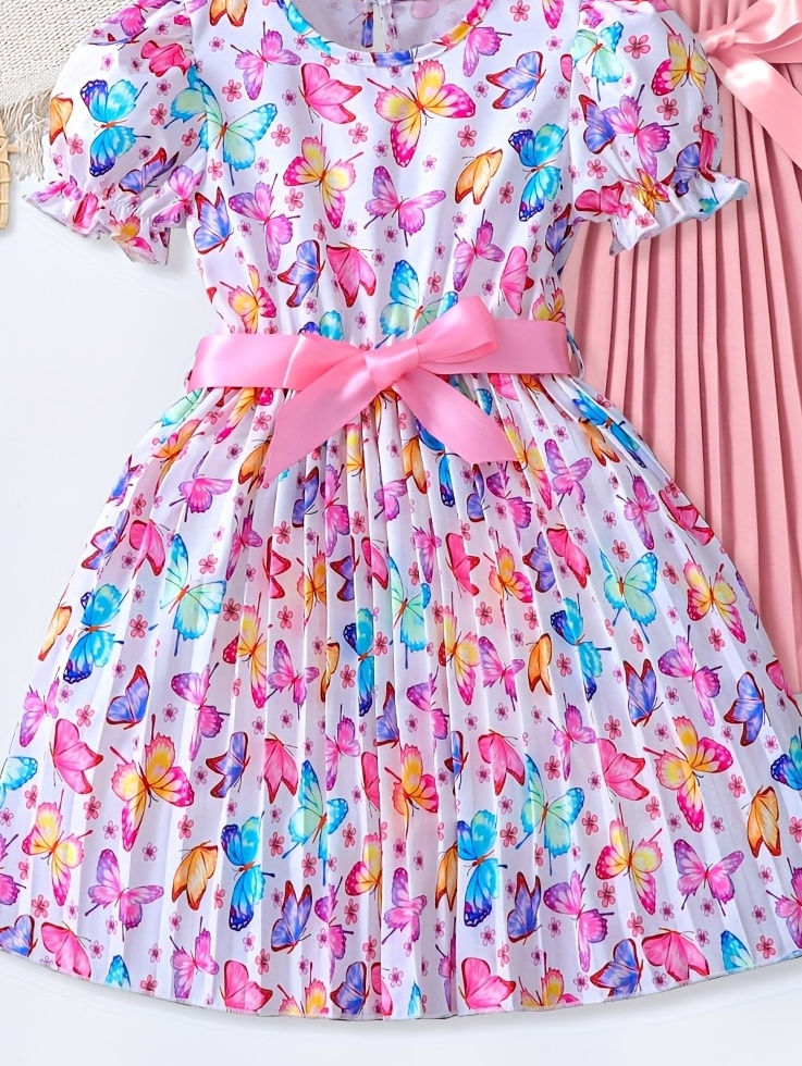 3pcs Girls' Summer Dresses with Butterfly & Bubble Sleeve Design - Short Sleeve