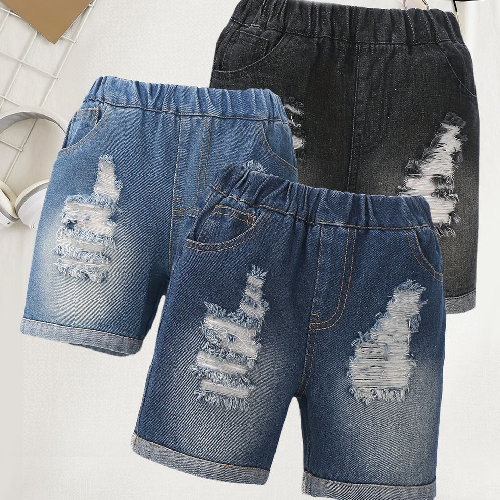 3pcs Girls Trendy Ripped Denim Shorts Set