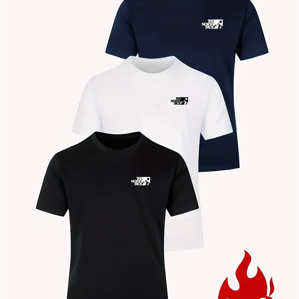 3pcs Men's Breathable Moisture-Wicking T-Shirts - 100% Polyester Quick-Dry Shor