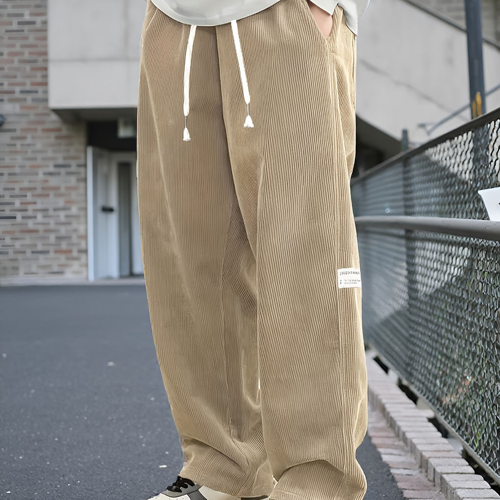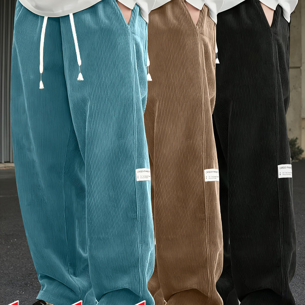 3pcs Men's Corduroy Casual Pants - Comfortable Loose Fit with Elastic Waistband