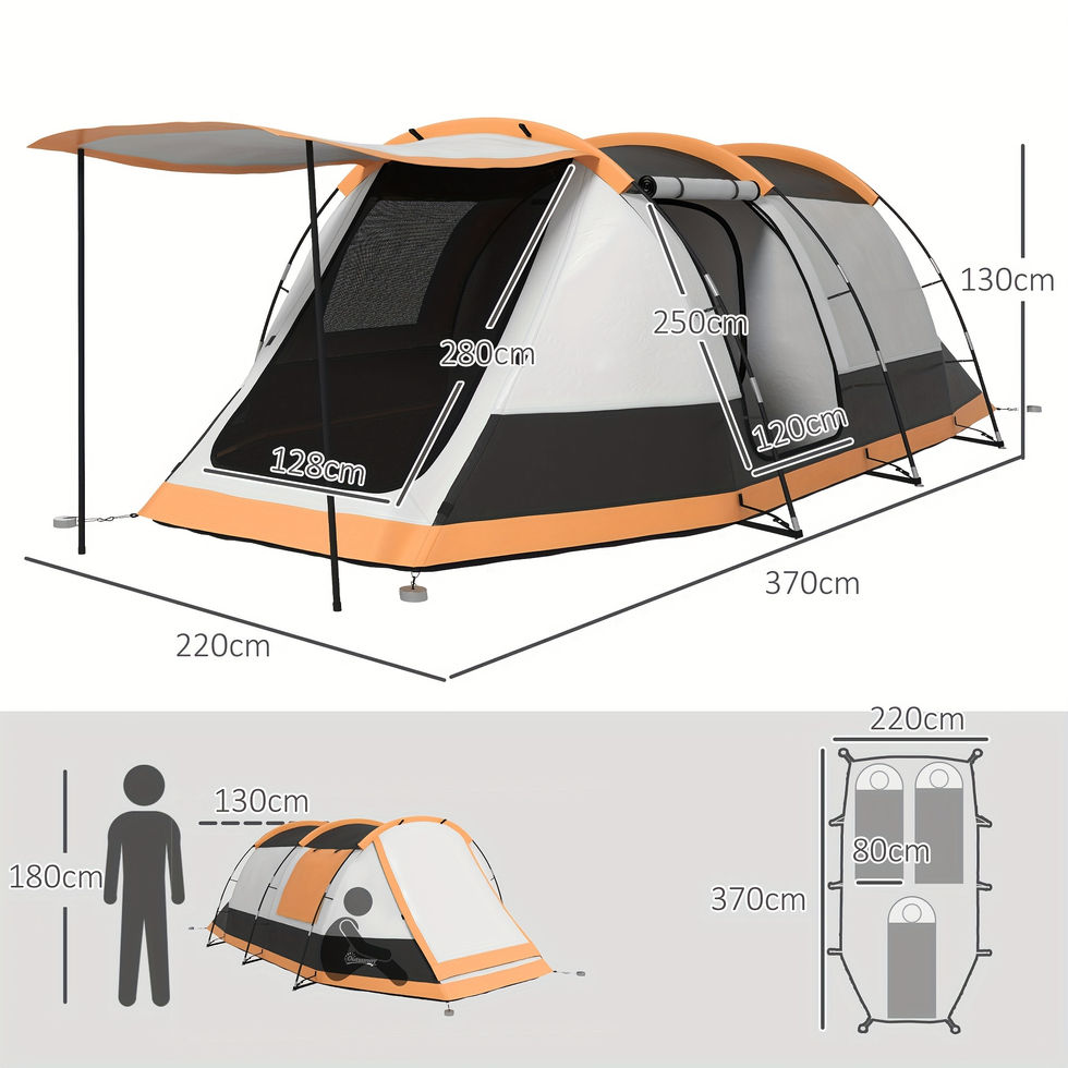 4-Person Family Camping Tent with Tunnel Design, Waterproof 2000mm Rainfly & Ve
