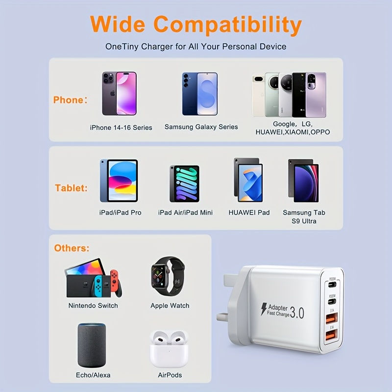 4-Port QC+PD 3.0 Power Block, 40W USB C Charger Adapter, for iPhone 17 16 15 14
