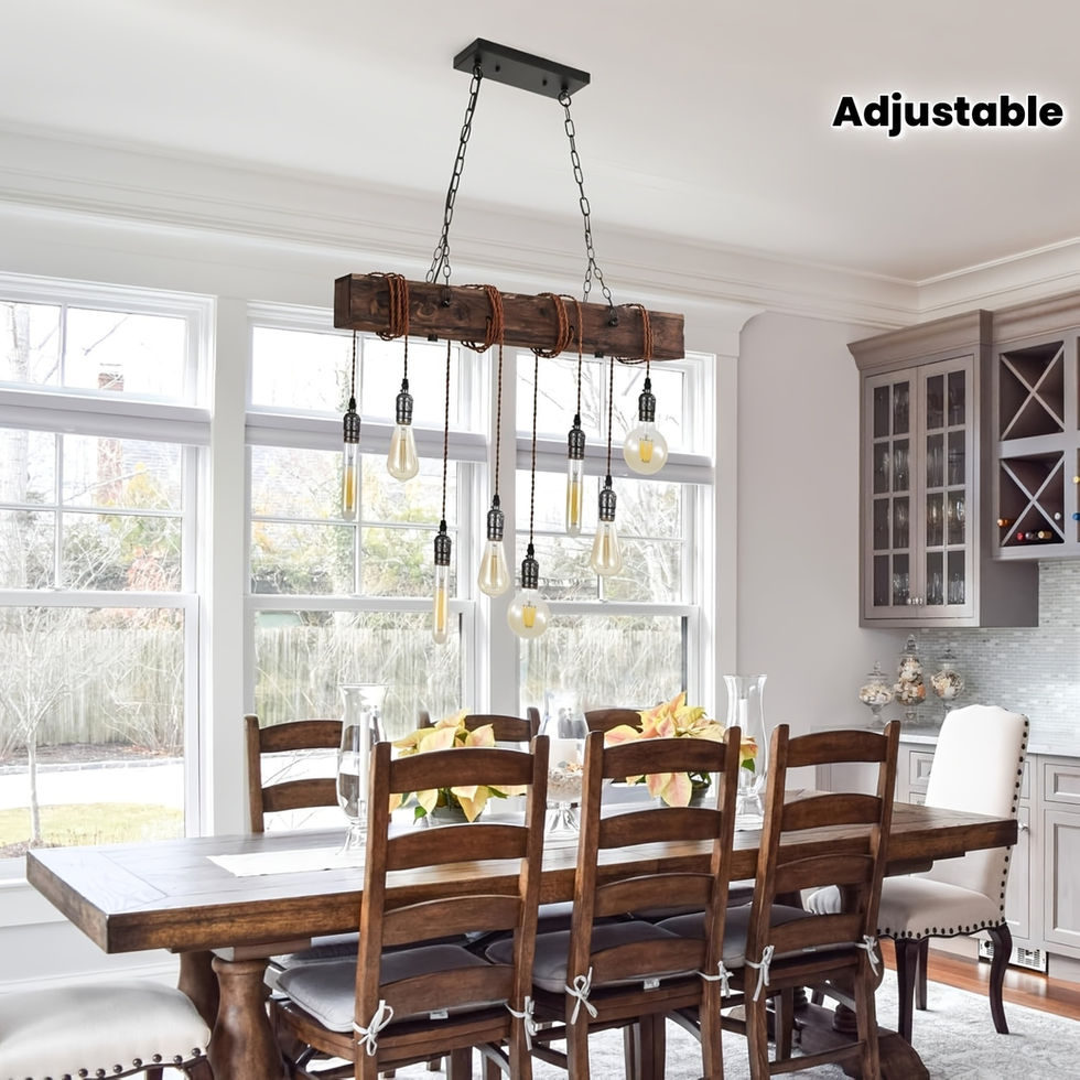 8-Lights Rustic Chandeliers For Dining Room, Farmhouse Wooden Ceiling Pendant L