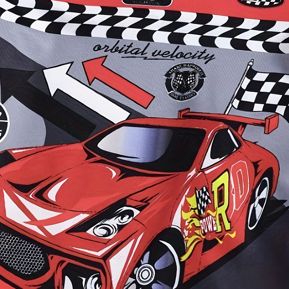 A Set of 2 Short-Sleeve T-Shirts with Cartoon Car Prints And Casual Shorts for