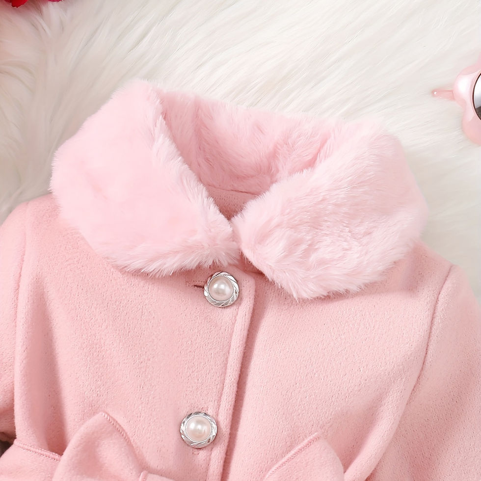 Baby Girl'S Winter Coat - Soft Plush Bow Lapel Collar Jacket, Warm Cold-Proof O