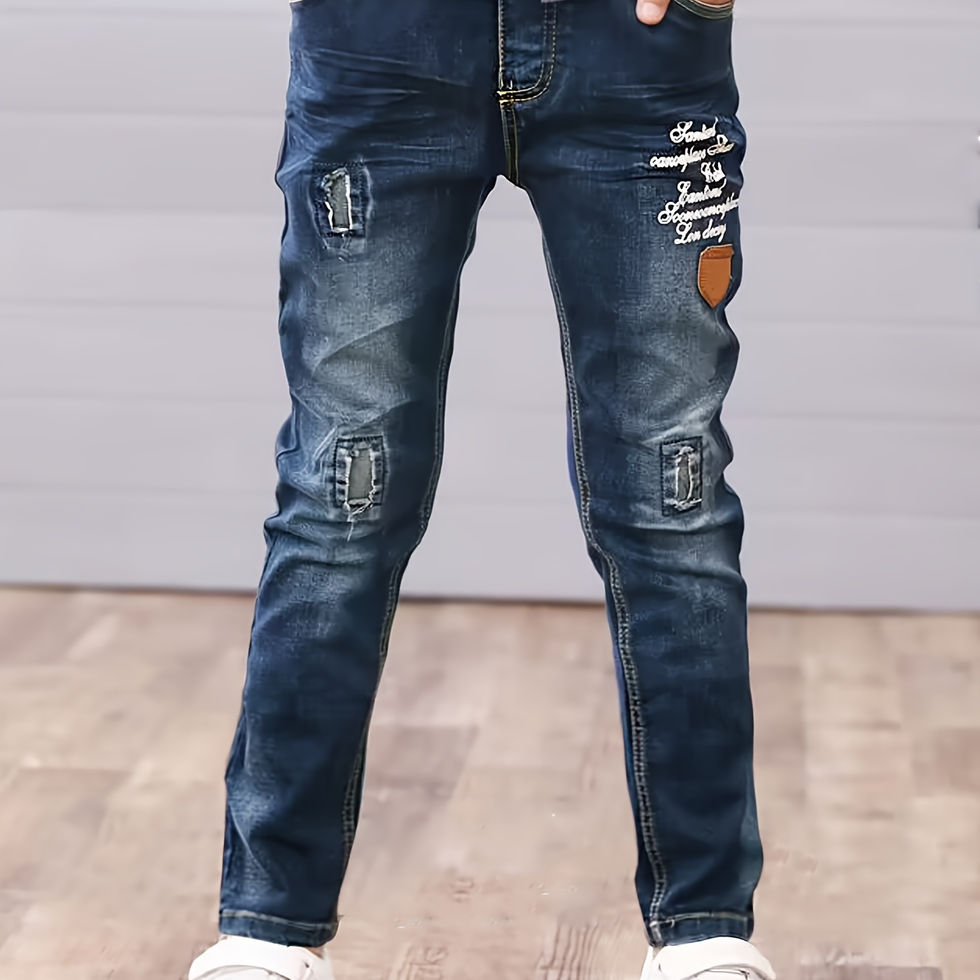 Boys' All-Season Washed Denim Pants with Contrast Stitching - Light Distressed