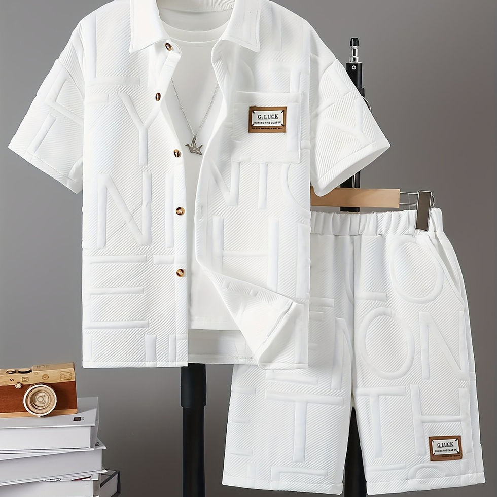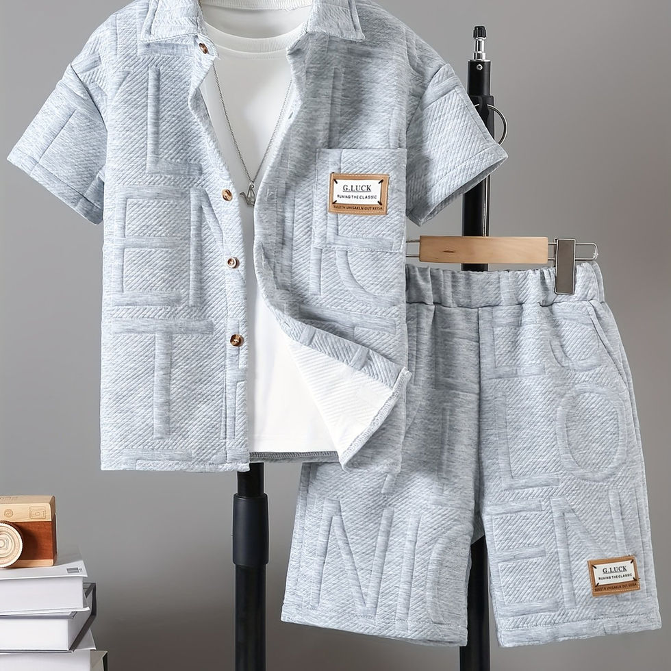 Boys' Fashion Summer Casual Suit Letter Embossed Shirt Shorts Two-Piece Set, fo