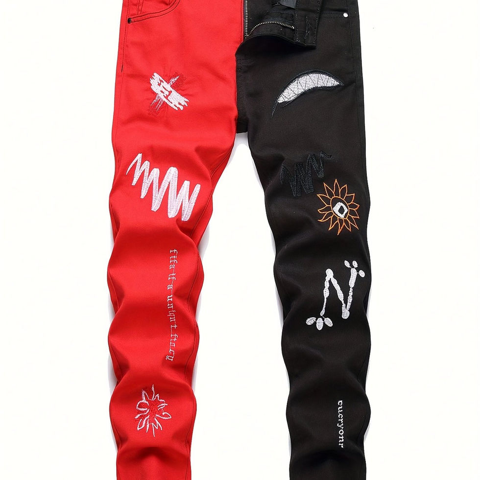Boys' Heavy-Duty All-Season Denim Jeans with Red & Black Distressed Lettering,