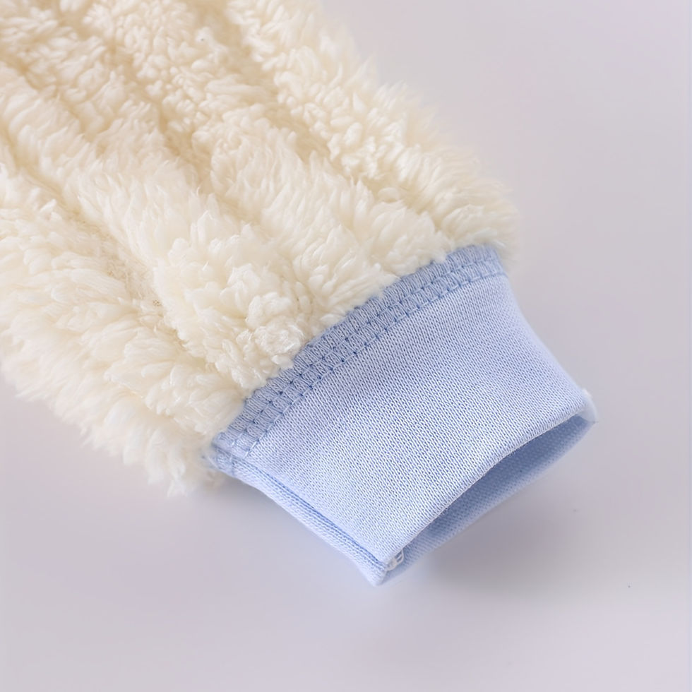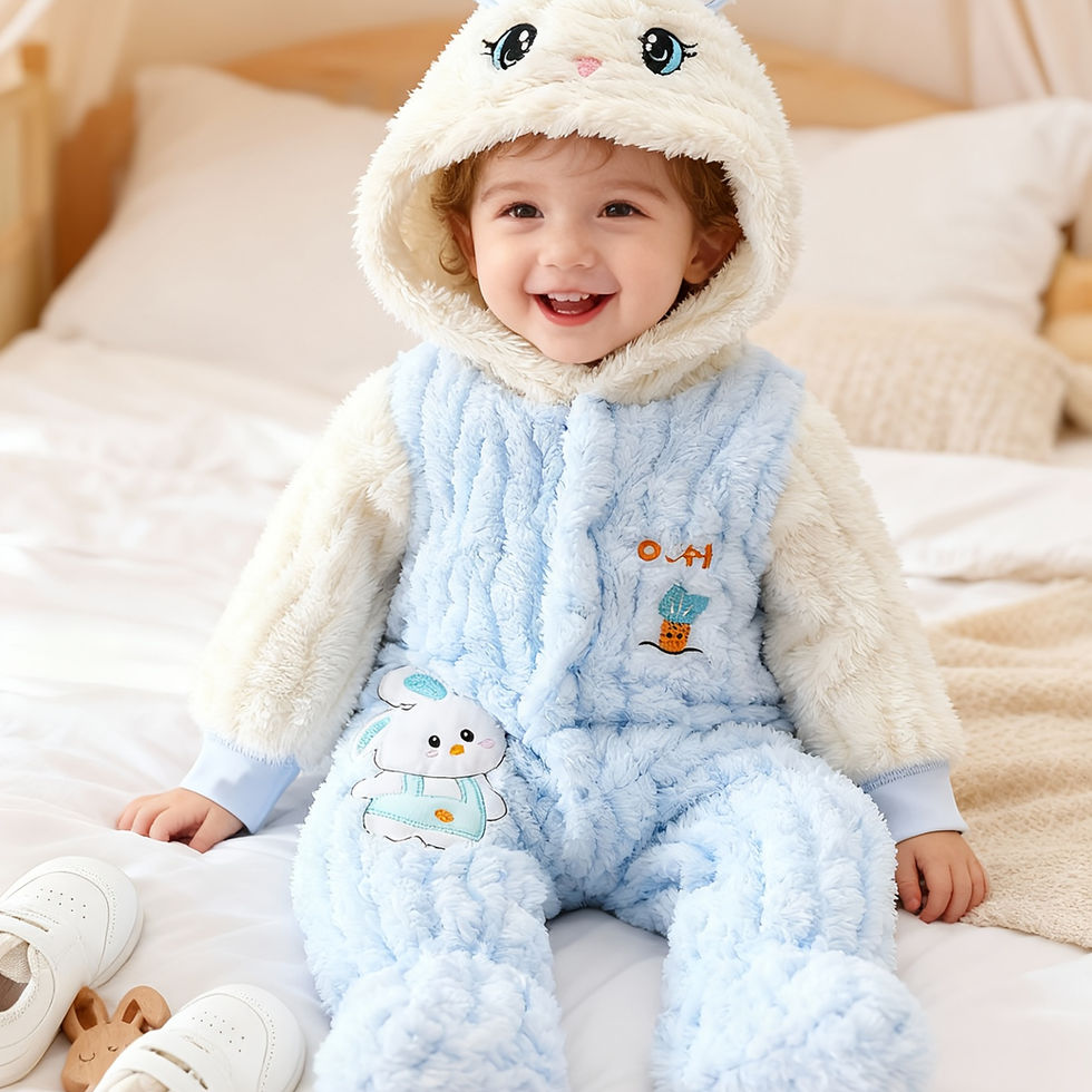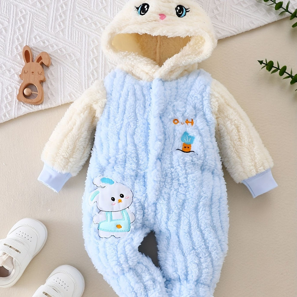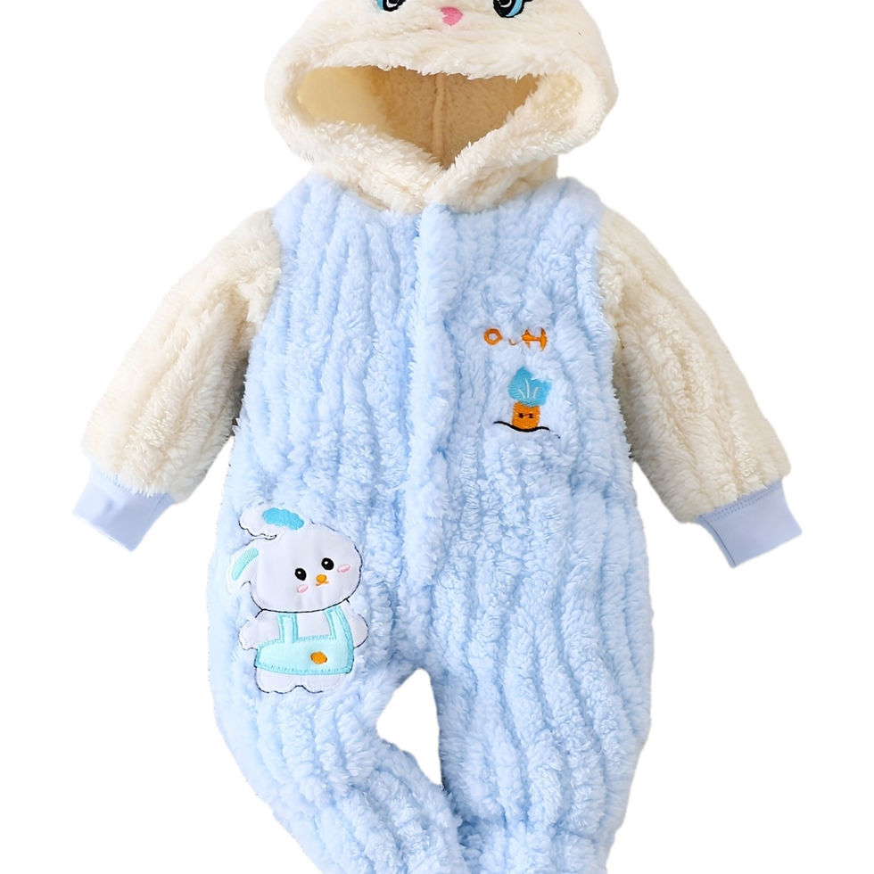 Boys' Plush Cute Rabbit Embroidered Hooded Bodysuit for Autumn/Winter, Warm Bab