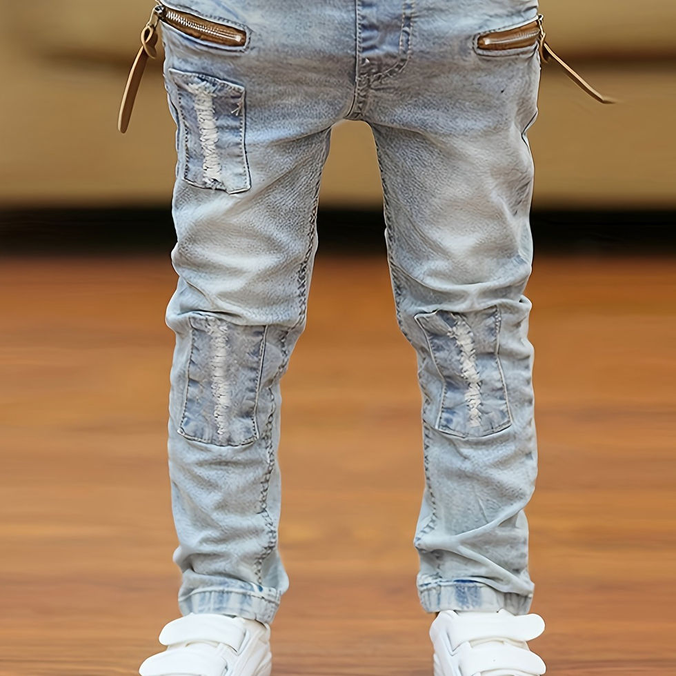 Boys' Slim-Fit Distressed Faux Denim Faux Denim with Pockets - Casual Spring/Fa