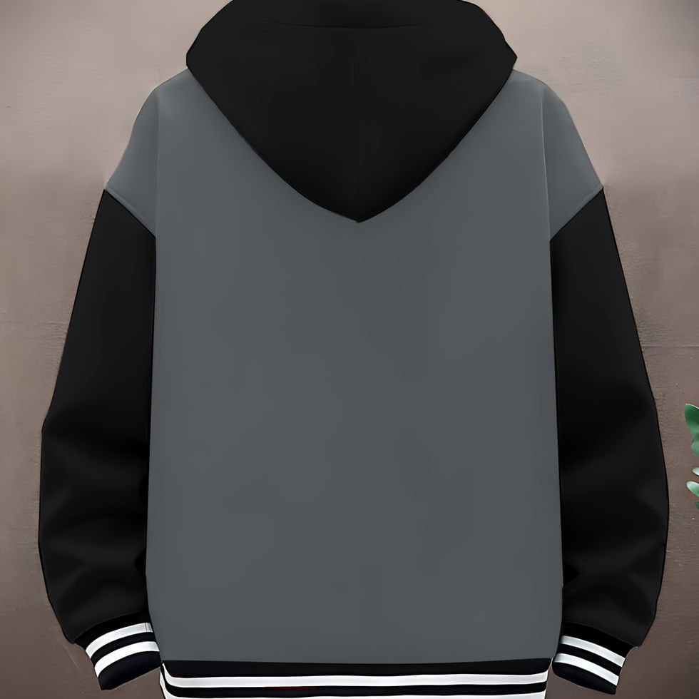 Boys' Trendy Red & Black Hooded Varsity Jacket with "THE BEST" & Cartoon Prints