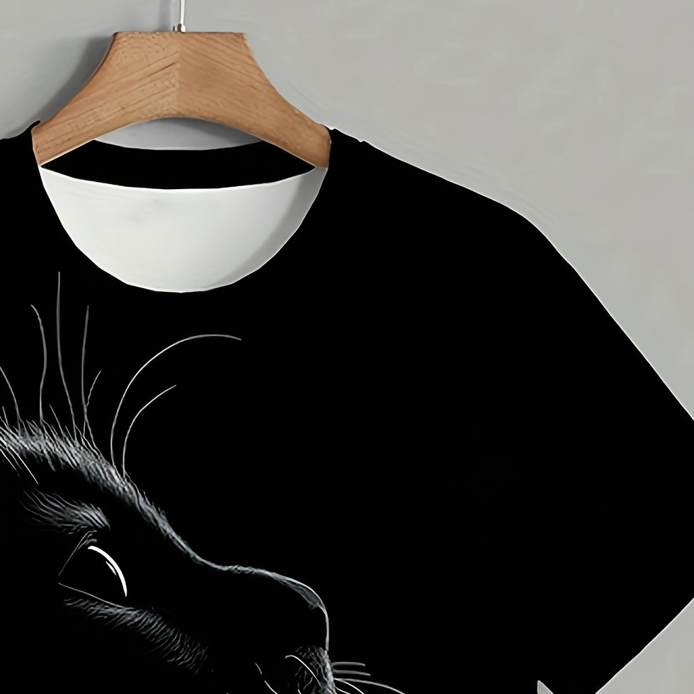 [Cat Print Polyester Tee] Polyester Blend Men's Casual Short-Sleeve T-Shirt | C