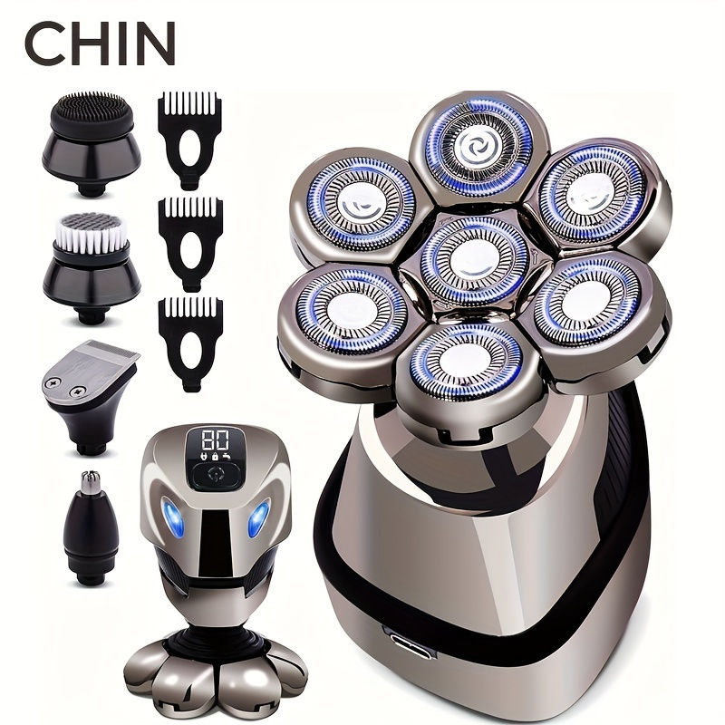 CHIN 5-in-1 Rechargeable Electric Head Shaver for Men - Wet/ Bald Head Grooming