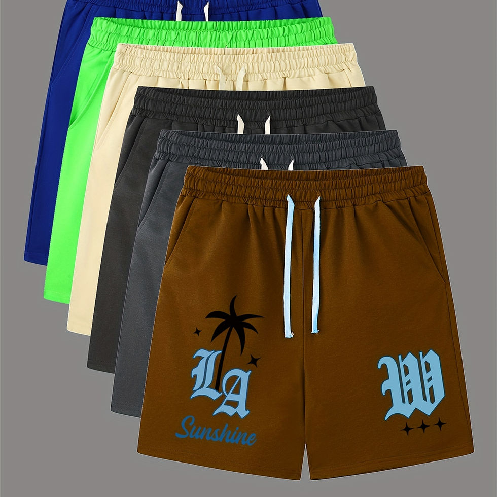 Coconut Palm Pattern Letter Print Comfy Shorts, Men's Casual Slightly Stretch E