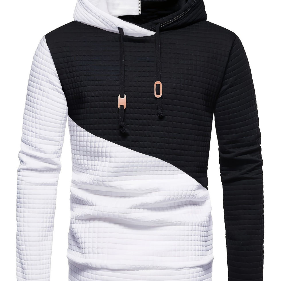 Cool Waffle Hoodies For Men, Men's Casual Color Block Design Hooded Sweatshirt