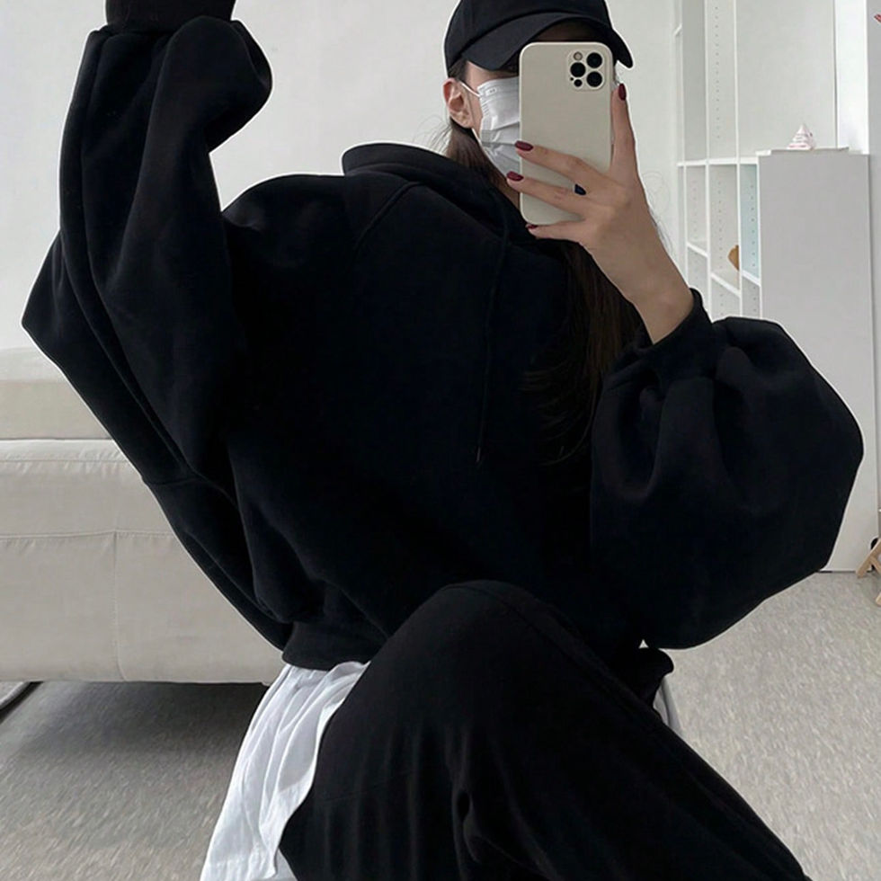 DAZY Women's Solid Color Hooded Oversized Crop Sweatshirt,Fall Clothes