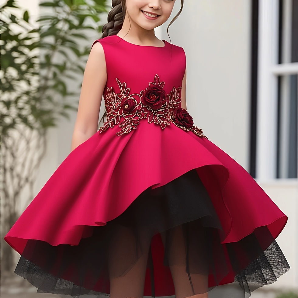 Elegant Red Embroidered Mesh Princess Dress for Girls 4-12 - Perfect for Piano