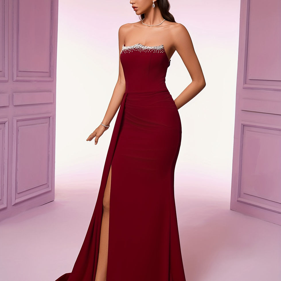 Elegant Red Off-Shoulder Evening Gown for Women - High Waist, Bodycon Mermaid D