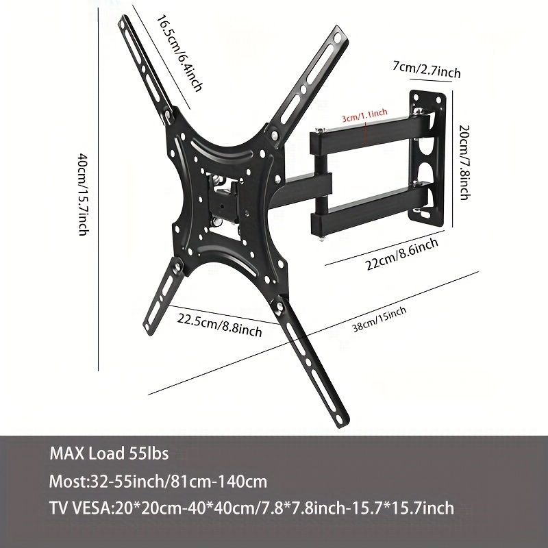 Full Motion TV Wall Mount for 32–55 Inch Screens, VESA 400x400mm, Rotating Swiv
