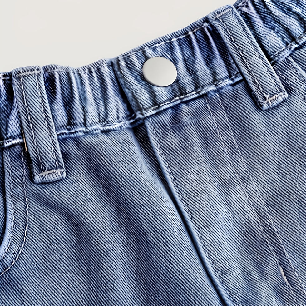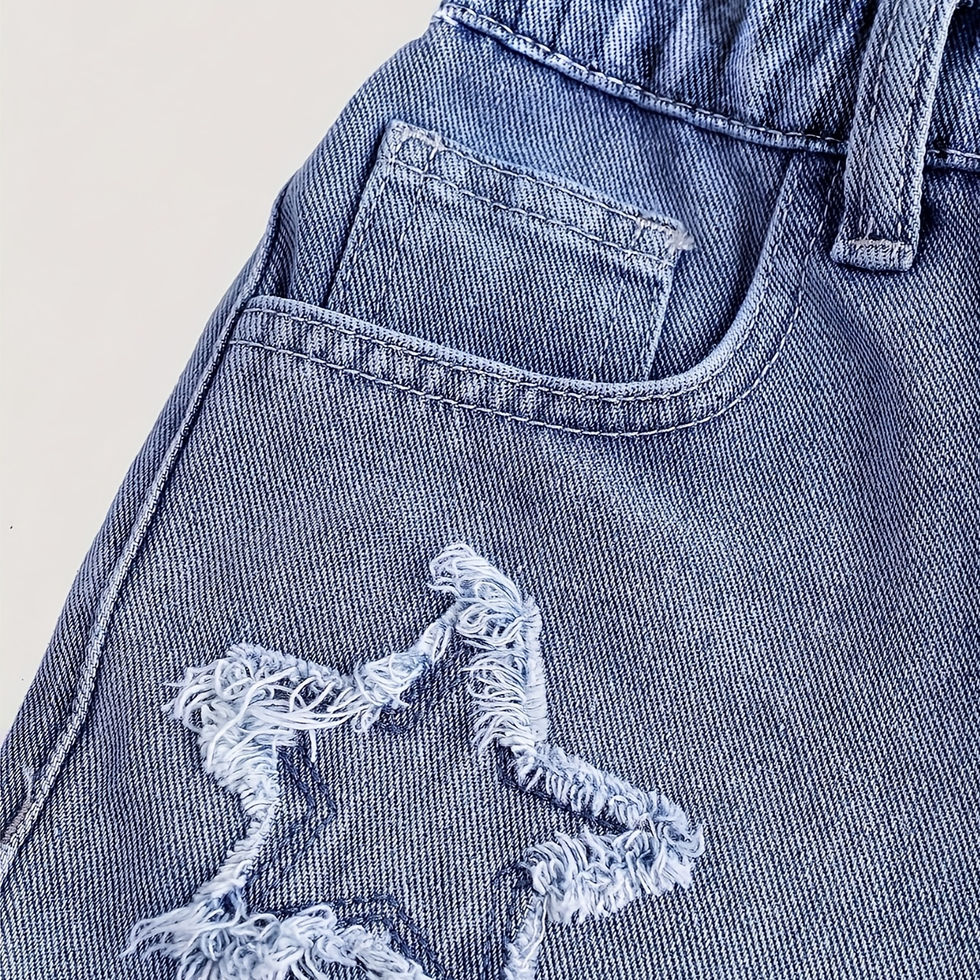 Girls' Denim Shorts - Stylish Deep Blue Jeans with Star Patch Design, Perfect f