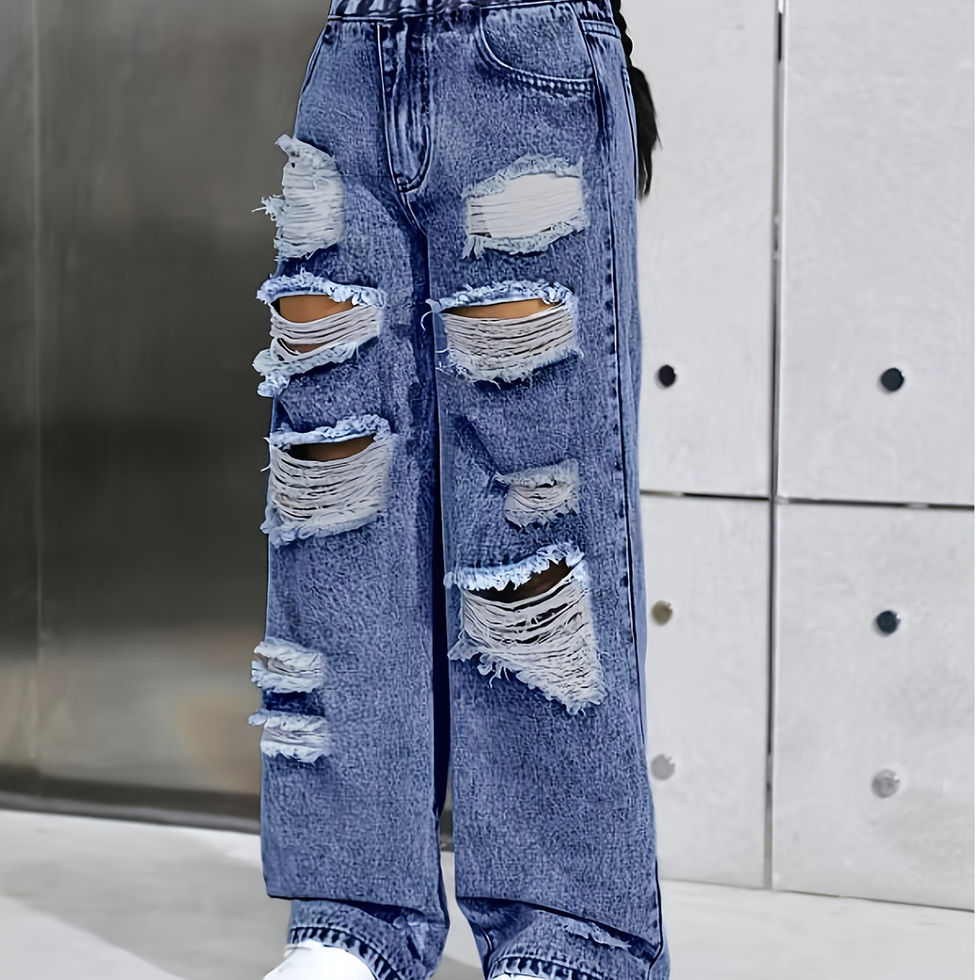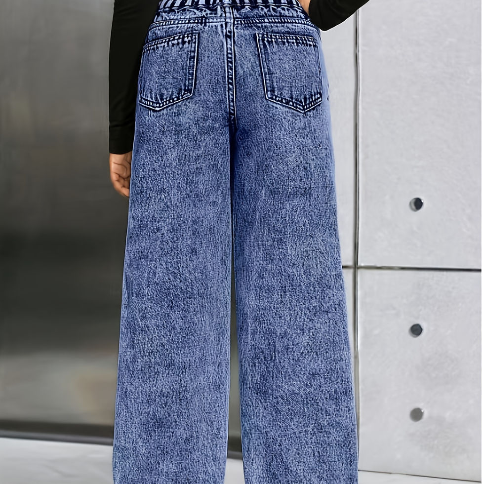 Girls' Distressed Blue Faux Denim Faux Denim - Street Style Fashion, Comfortabl