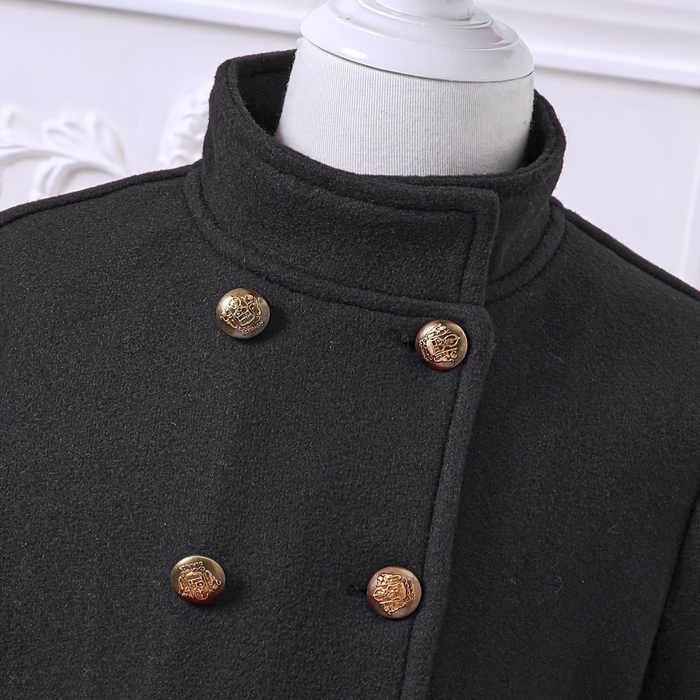 Girls' Elegant Black Tweed Coat with Double-Breasted Buttons & Matching Hat - H