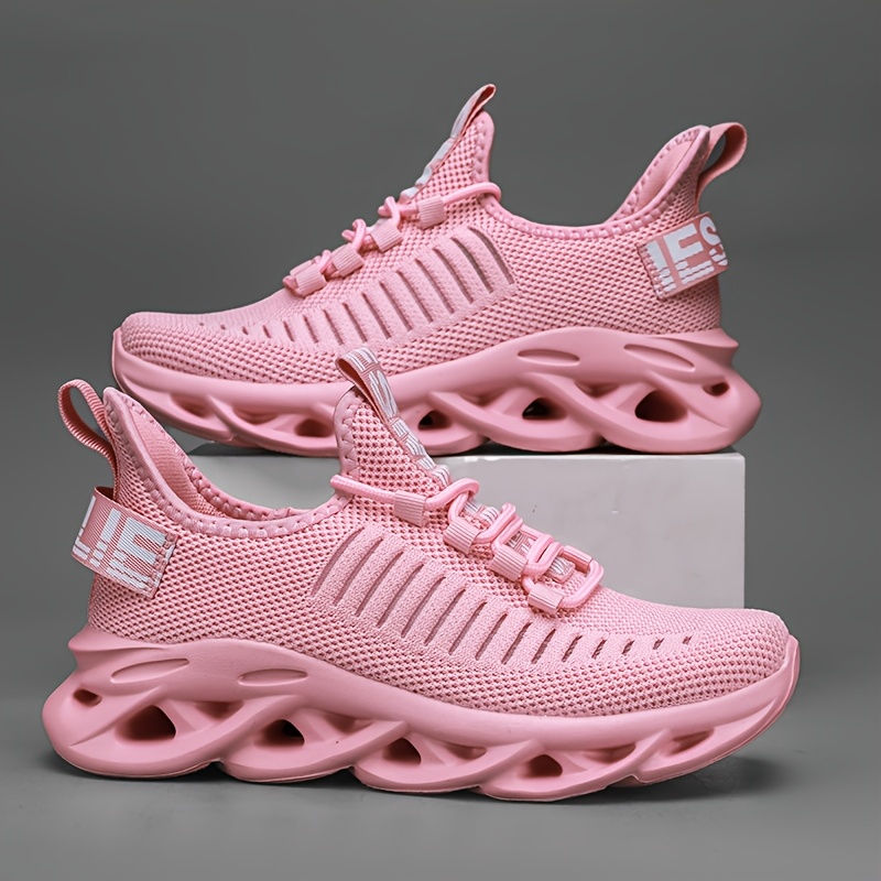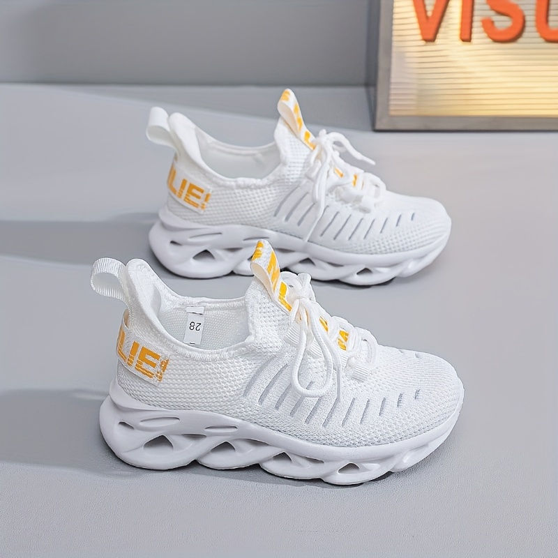 Girls' Lightweight Breathable Running Shoes - Low-Top Mesh Sneakers with Wave P