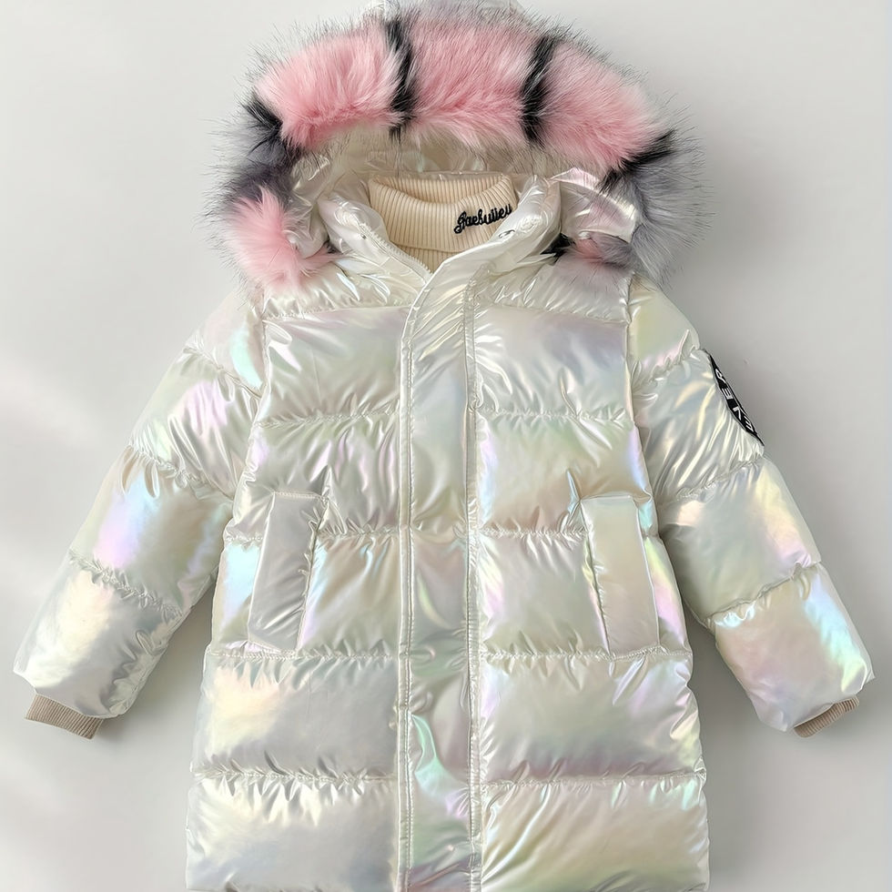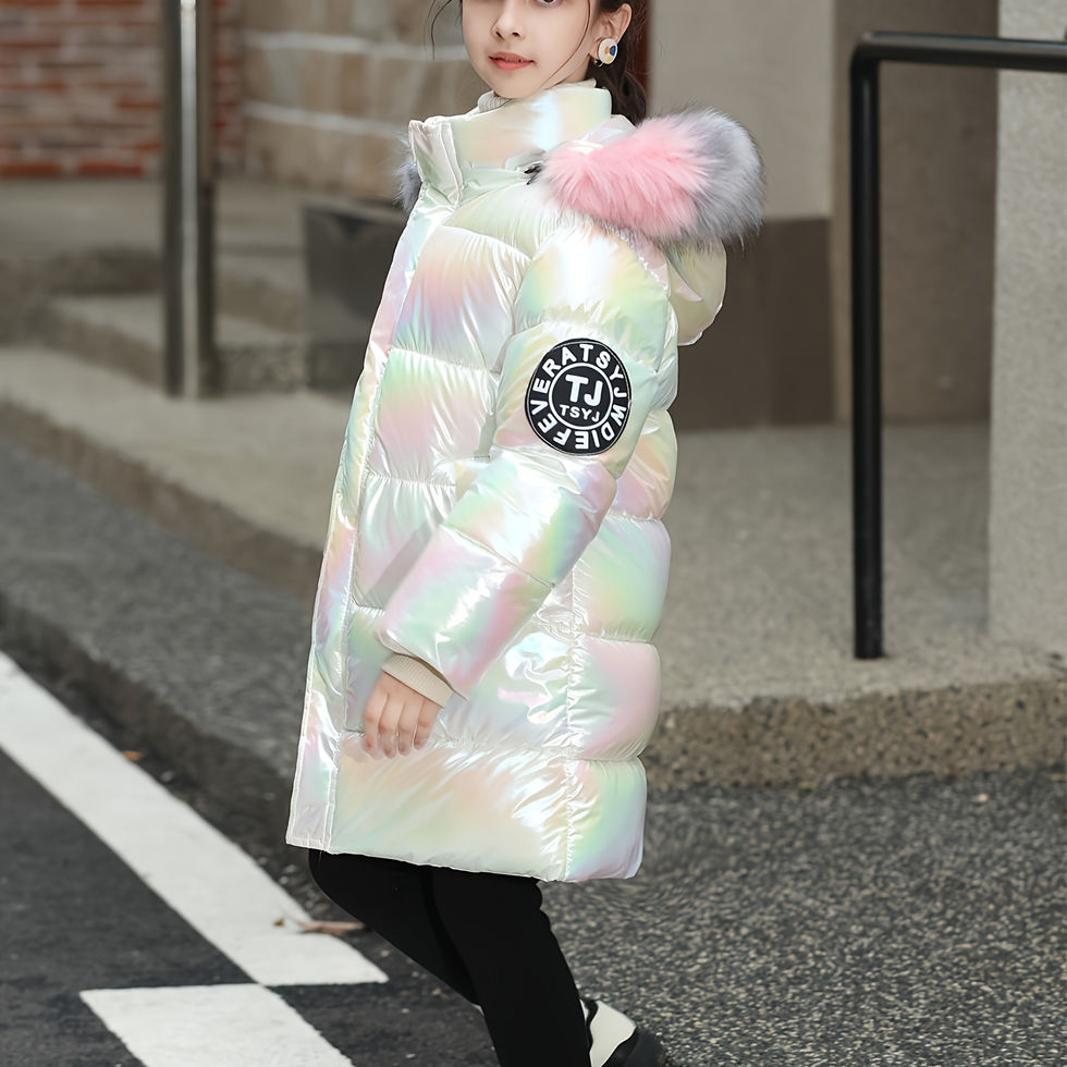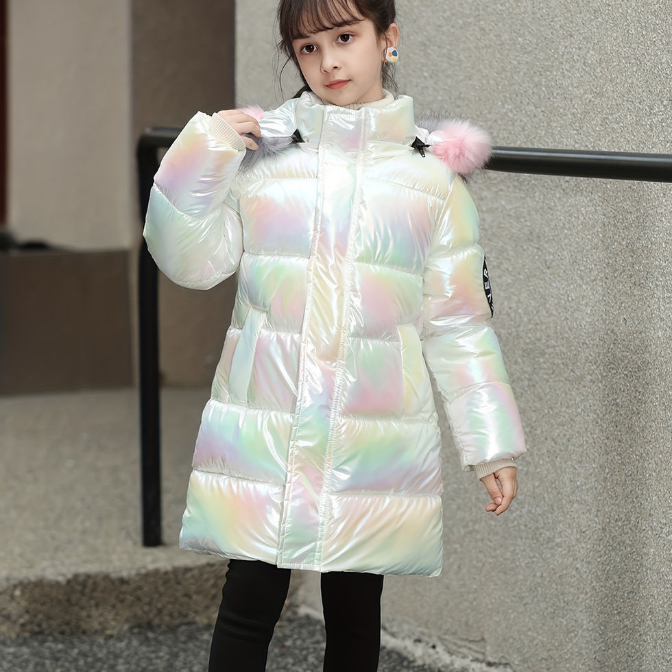 Girls' Long Coat, Ombre Hooded Winter Jacket, Casual Skinny Fit with Pockets, M