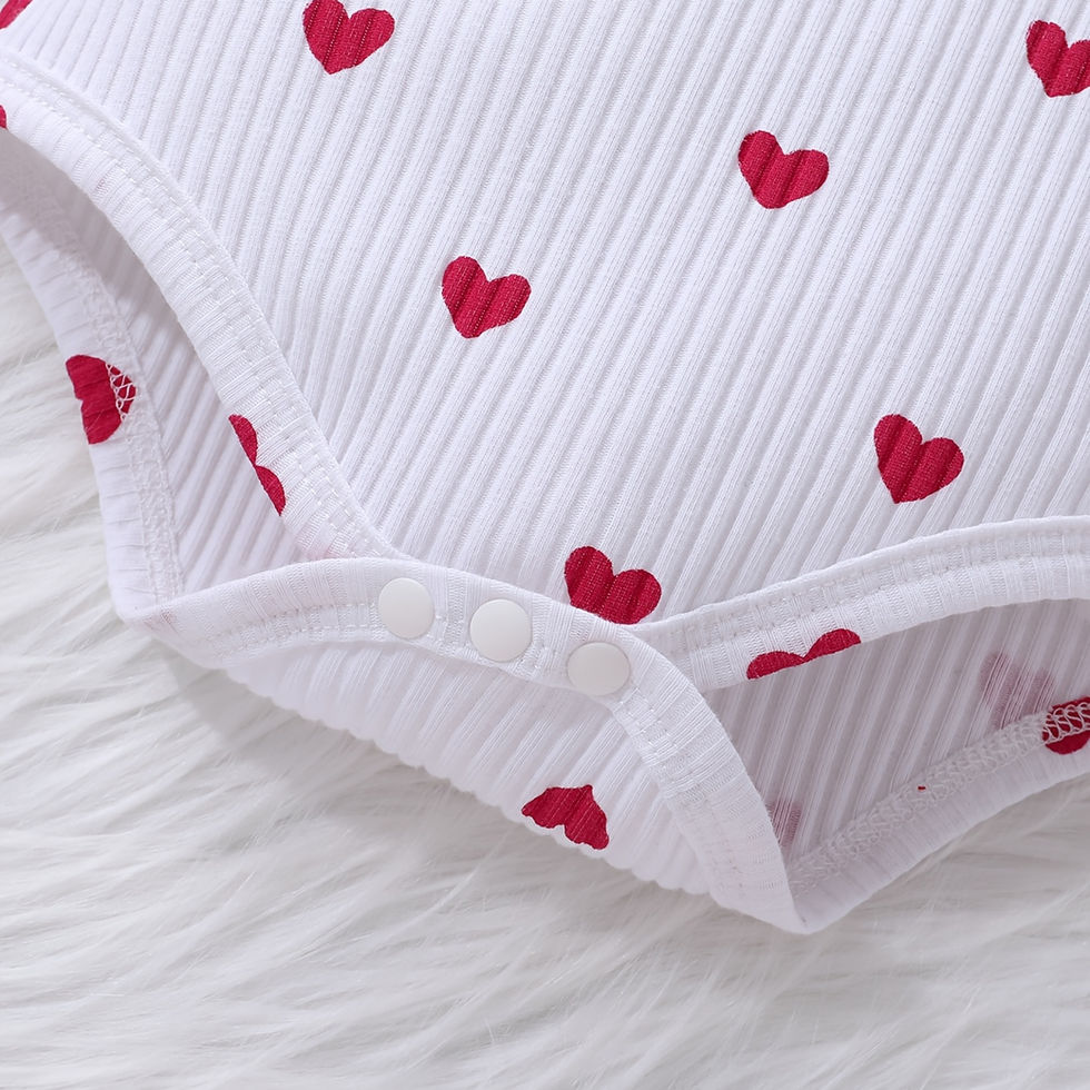 Girls' Love Print Ruffle Sleeve Top Double Skirt Overalls with Bow Headband Thr