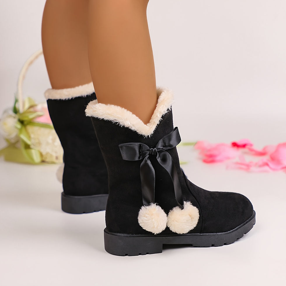 Girls' Winter Boots with Plush & Tassel Accent - Slip-On Round Toe TPR Sole, Wa