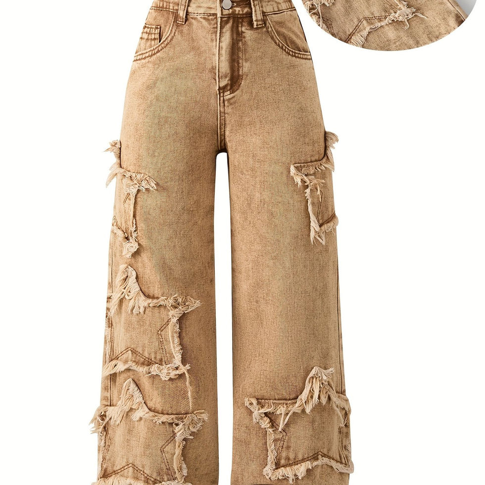 Girls' Y2K Streetwear Jeans - Oversized Wide Leg Trousers with Frayed Hem & Dis