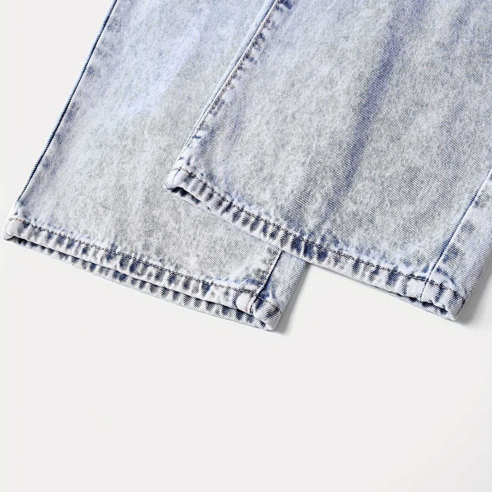 HEY+JEANS 2025 Teen High-Waisted Wide Leg Jeans with Pink Bow Embroidery - Ligh