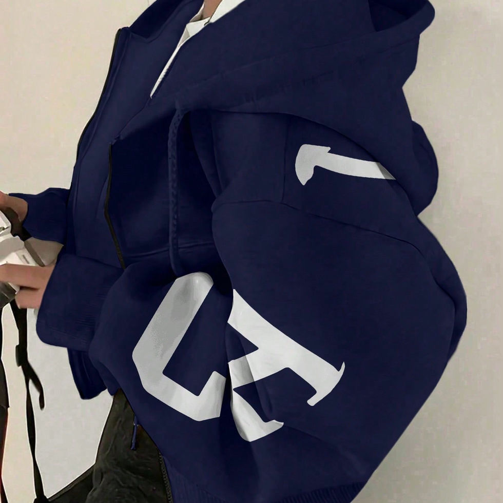 INAWLY Hooded Thermal Lined Sweatshirt, Autumn/Winter Short Loose Jacket,Ladies