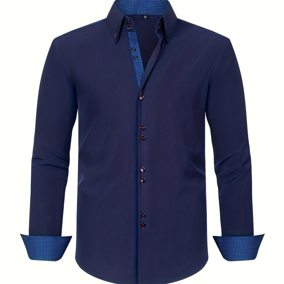 Light Blue Double-Breasted Dress Shirt - Elegant Men's Formal Wear, Comfortable
