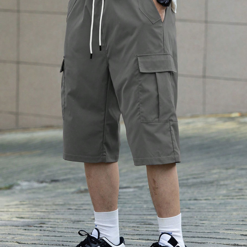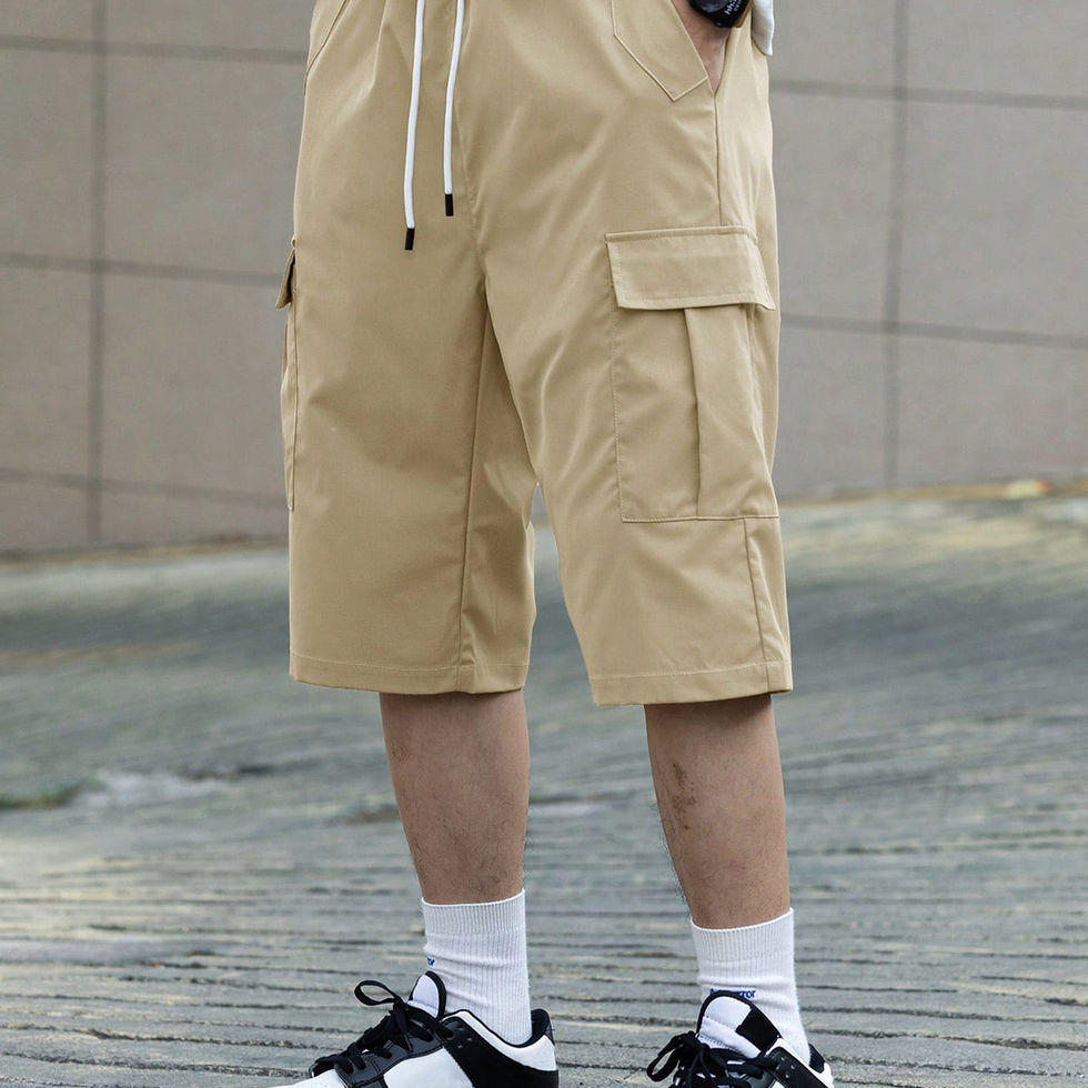 Manfinity EMRG Men's Solid Color Drawstring Waist Wide Leg Loose Casual Shorts,