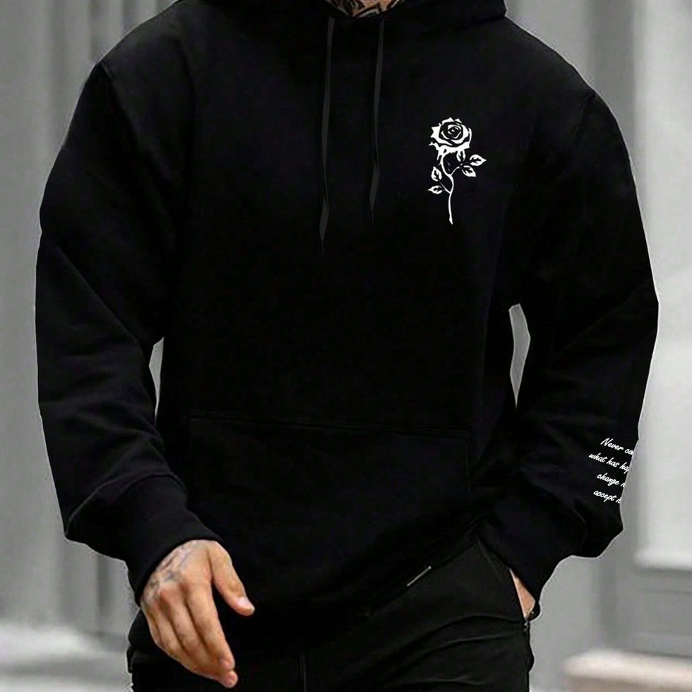 Manfinity Homme Men's Loose Fit Hoodie With Floral & Slogan Graphic Print, Kang