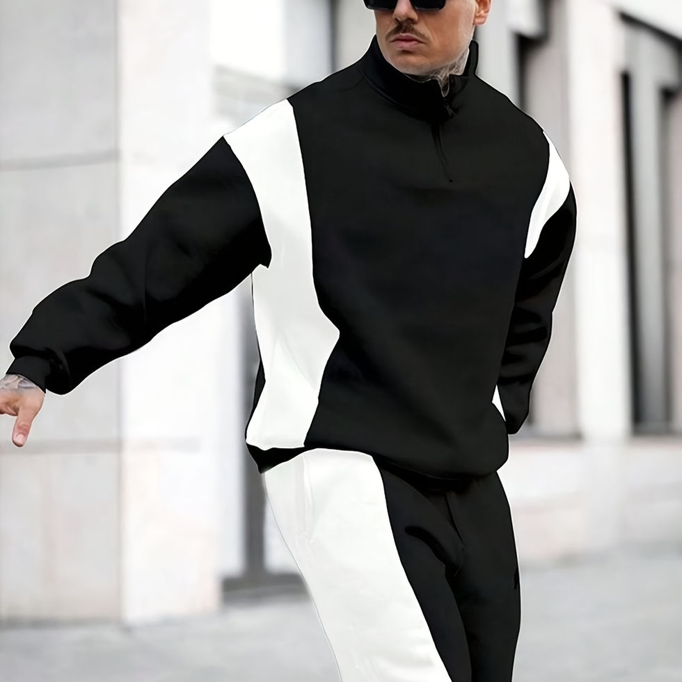 Men's Autumn/Winter Color Block Zip Half-Zipper Long Sleeve Casual Fashion Vers